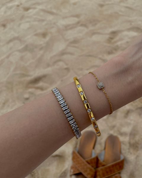 Waterproof Square Shape CZ Bracelet 方形墜飾手鍊