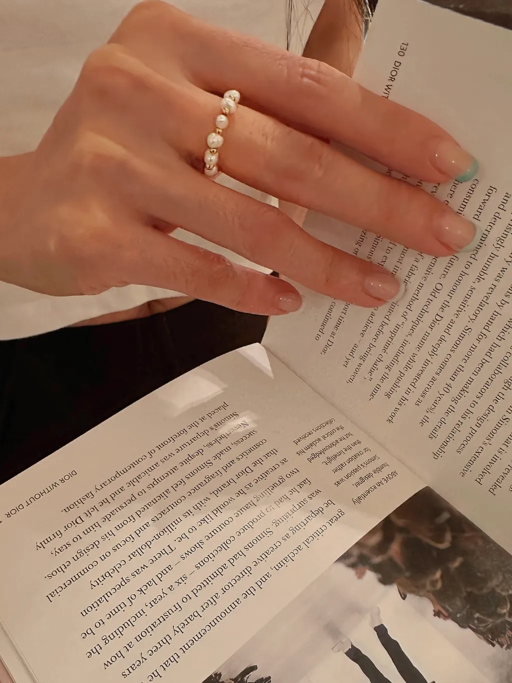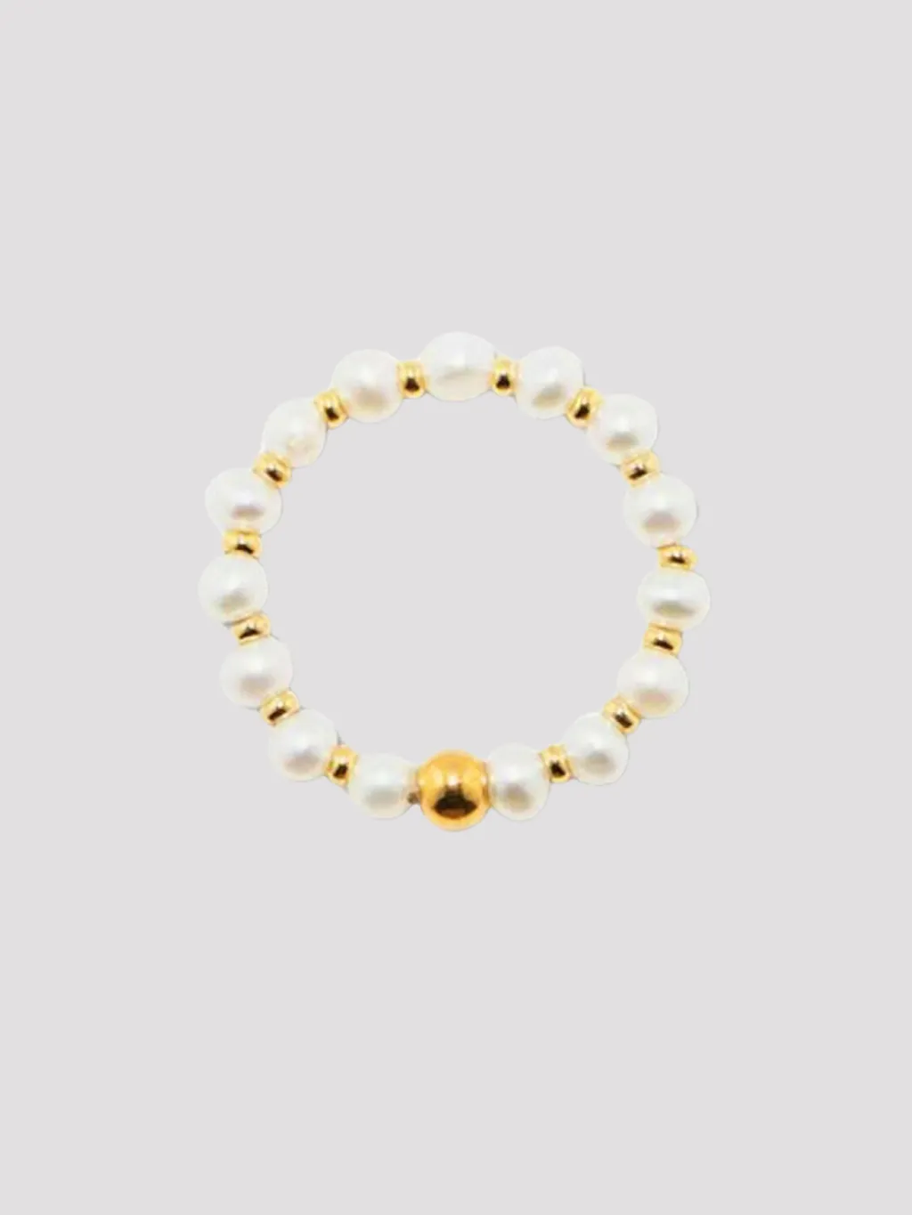 細節:天然珍珠,隔小金珠戒指